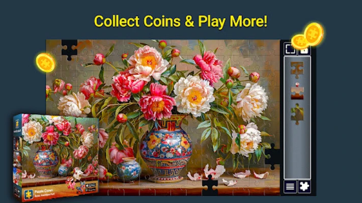 - Coin System. Collect coins by completing jigsaw puzzles and pend them to unlock more puzzles!