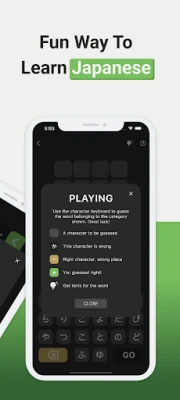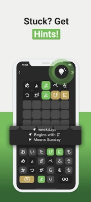 In JWords you guess words after getting tips helping you to build patterns of how words are combined in Japanese.