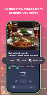 Choose from a collection of carefully crafted reading materials or generate custom articles tailored to your interests. Save challenging words and make them part of your exercises. Tap any word to see its translation or hear its pronunciation.
