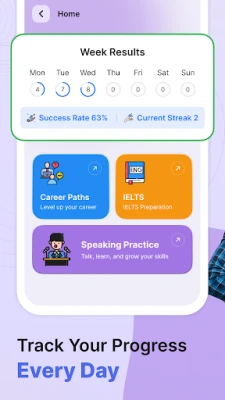 AI Chat Tutor & Real-Time Conversation: Stop wondering how to speak naturally. Practice the english we speak every day through interactive dialogues. If you need topics to talk about, our AI suggests engaging themes to help you talk english standard and build confidence.