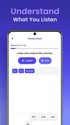 • Practice Quizzes: Reinforce your knowledge with interactive quizzes covering German vocabulary and comprehension.