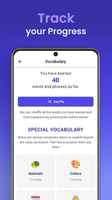 • Vocabulary Builder: Learn and remember the most useful German words and phrases with fun activities and spaced review.