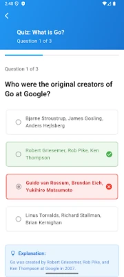 Learn GO Programming is a complete learning app designed to help beginners and professionals master GO Programming from the basics to advanced topics. Whether you are new to programming or want to strengthen your skills, this app provides structured lessons, real examples, and interactive quizzes to help you learn efficiently.