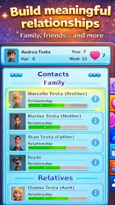 Live over 100 years in a single game. In LifeSim, every choice shapes your family, career and life story — from childhood to old age.