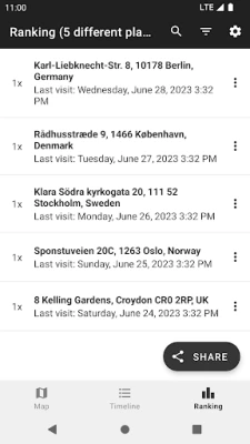 - show your location history on the map - keep a log book of your location history - show your previous locations - rank which location you've visited most - add pictures to your locations - rate your locations