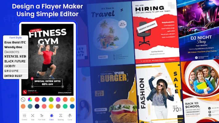 Create customized flyers with this easy flyer maker and poster maker app. Use ready flyer templates to make posters or an event flyer in minutes.