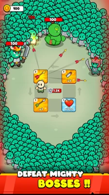 Build your team of heroes, each with their own style and skills. Choose a Stone warrior for toughness, a Goblin for unpredictable attacks, or an Electric Archer for ranged power. Mix and match heroes with different weapons to create new tactics every run. With upgrades and combinations to explore, no two battles ever feel the same.