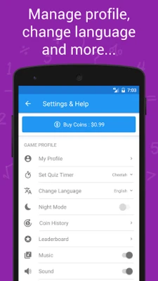 Is it hard for you to finish game within limited time? No worries! We’ve 5 quiz timer modes for you. Just go to Settings > Set Quiz Timer and set as per your math expertise. Also app offers multilingual support to let you explore app in your preferred language.