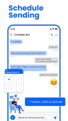- The Easy, Smart, and Cool message app provides a schedule message feature to schedule SMS and deliver at the exact time & date you wish.