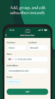 • Manage your list of subscribers and add contacts