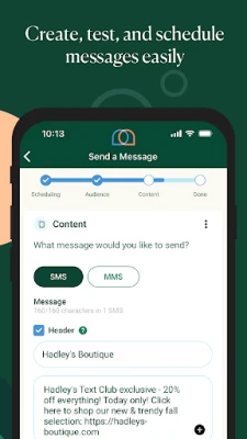 • Create, schedule, and send mass SMS and MMS campaigns