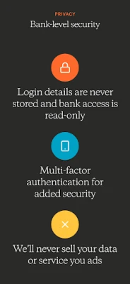 Monarch uses bank-level security, and we never store any of your financial credentials. Our platform is read-only, so there is no risk of your money moving. We take your privacy seriously and will never sell your personal or financial information to third parties.