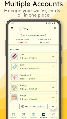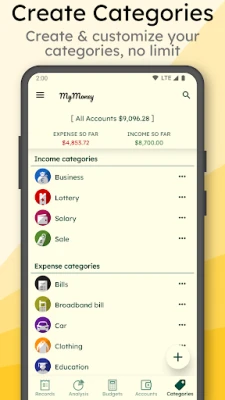 How to manage money and track expenses with MyMoney? It's simple, just add an expense record when you are spending somewhere. MyMoney will take care of it. See every dollar you spend to pay a bill, buy a coffee or anything with ease. MyMoney is your ultimate budget planner app that helps you plan monthly budget, achieve your budget goals and save money effectively. Too much spending on coffee? Set a budget on coffee and surely, you would not cross the budget goal. This limits your money use and helps you control your spending behavior. If you really want to track and save your money, MyMoney is the money tracker app that can really make it simple and easier for you.