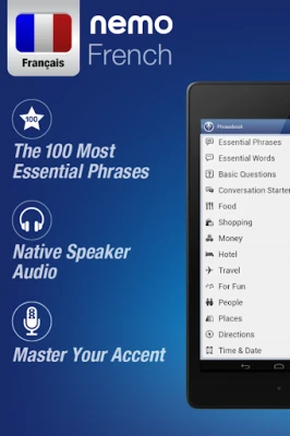 Nemo is designed to start you speaking the most useful words in French immediately and confidently. With millions of downloads from around the world, Nemo is now available for Android phones and tablets.