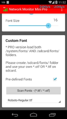 PRO version features: • Adjustable Kilo Value • Adjustable Decimal Places (Please turn it off if you have flickering problem) • Normalize VPN / proxy / loopback traffic • Custom Readings Location • Show on Status Bar • Hide Readings when there is No Traffic • Hide when Specific Apps are Running • Hide when Day Dreaming (screen saver - 4.2+) • Beta Test: Traffic Breakdown Mode (for supported devices only)