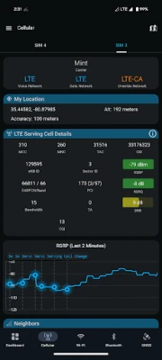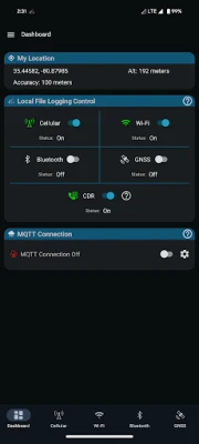 The Network Survey Android App provides a basic survey capability for logging and analyzing Cellular networks, Wi-Fi networks, Bluetooth Devices, and GNSS constellations. Capture detailed records of signal strength, network information, and device data. All data can be conveniently logged to GeoPackage or CSV files for offline analysis. Alternatively, choose to live stream the data via MQTT or gRPC protocols for real-time monitoring and integration with other systems.