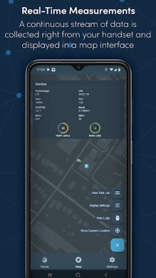 > Sampling of network performance in real-time with internet, coverage and serving cell data collected right from your handset and displayed in a map interface