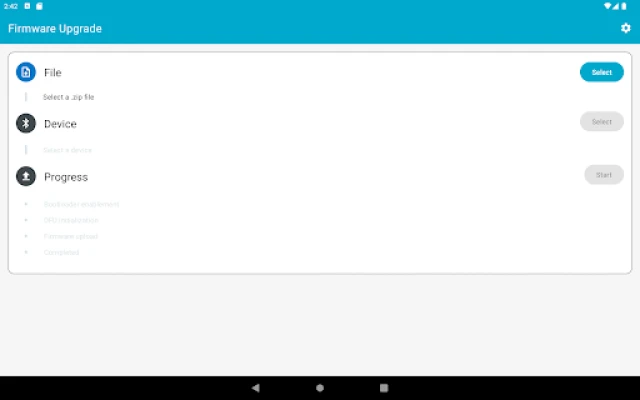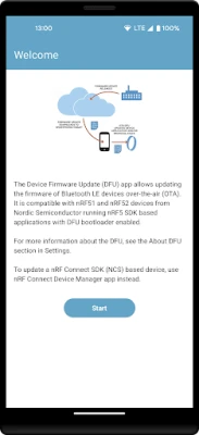 nRF Device Firmware Update is a mobile app for updating nRF5 SDK firmware using Bluetooth Low Energy as a transport. It can update the firmware of nRF51 or nRF52 Series SoCs having an nRF5 SDK Secure Bootloader (v12.0.0 or newer) or an nRF5 SDK legacy bootloader (v4.3.0-11.0.0).
