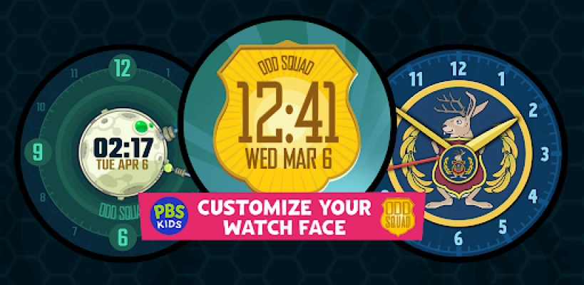 Your child can upgrade and enhance their watch experience with this fun Odd Squad watch face design from PBS KIDS! Look for the two other Odd Squad watch face designs with the Odd Squad team’s Seal and Badge. Download the Odd Squad Gadget Watch Face now from PBS KIDS and give your child the ability to personalize their Wear OS experience.