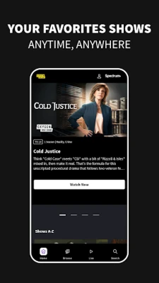 o Get started by signing in with your TV subscription (cable, satellite, or digital). The Oxygen app supports most TV providers, including DirecTV, Spectrum, Xfinity, Dish, and AT&T.
