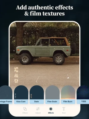 Film-inspired effects like frames, dust, grain, and vintage VHS dates take the guesswork out of creating a vibey edit