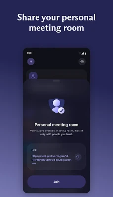 Start in seconds — Create a meeting room link and invite anyone, even if they don’t have a Proton Account or the Proton Meet app.