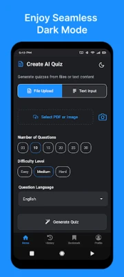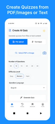 -PDF to Quiz: Upload your notes, textbooks, or study guides in PDF format to generate quizzes instantly.
