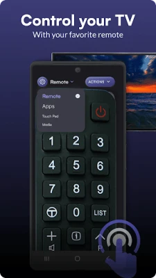 ‣ Remote control screen: remote control appears on the whole screen and you just need to tap buttons like a regular remote