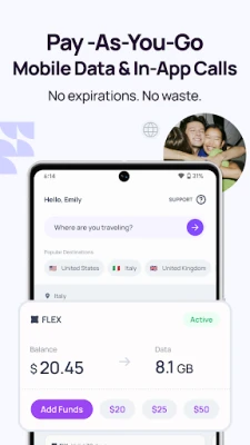 • Data + Voice in one app: Mobile internet and international in-app calling with a single wallet