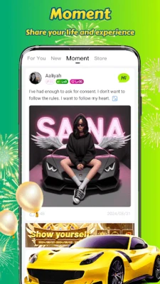 Chat - Chat directly with friends from all over the world in the Voice Party Room or Video Party Room.