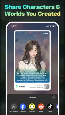 Unlimited Continuation Feature: Keep your story going with Sekai’s continuation feature, turning your creations into a full-fledged anime series, with each episode packed with new twists and excitement.