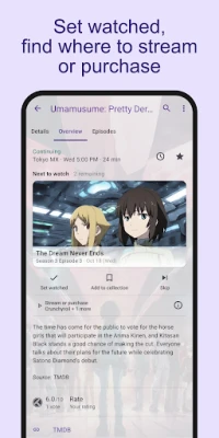 Check off and keep track: keep a record of watched episodes and movies, see your progress. Stay aware of new episodes.
