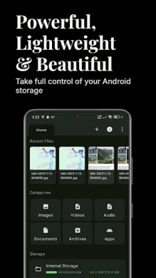 It's simple: this app combines the power of a full-featured file explorer, a media player, an archive tool, and an app analyzer into one single, sleek, and efficient package.