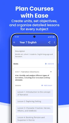 Plan structured units and engaging lessons. Add objectives, activities, and more.