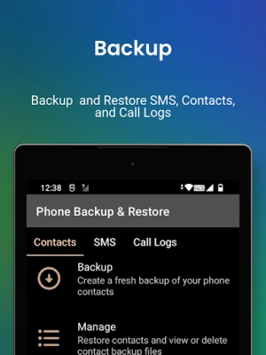 Effortless Data Backup: Easily create backups of your contacts, text messages, and call history with just a few taps. Ensure that your crucial data is securely stored and easily restorable whenever needed.
