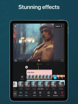 • Add stunning visual effects like glitch, prism, vintage, and more.