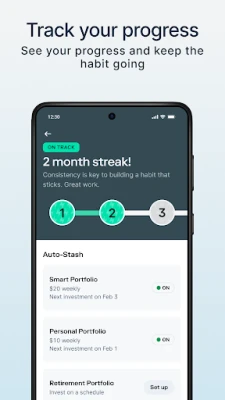 Stash customers who invest on a schedule with Auto-Stash set aside 9x more than those who don’t.1 Set it once, and add to your Stash in the background—no extra work needed.