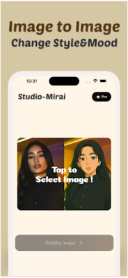 Introducing Studio Mirai, a cutting-edge app that "Ghiblify" your image into ghibli style image. Whether you're a professional designer, a content creator, or someone who loves to explore creativity, this app is your ultimate tool for generating high-quality ghibli style images effortlessly.