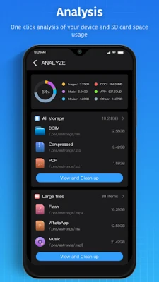 Disk Analysis: Analyze your space usage, large files, file categories, recent files, folder sizes