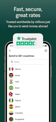 Transfer money to 50+ countries including: