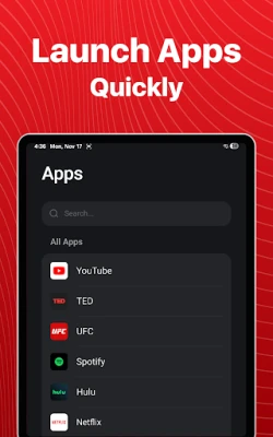 ▶ Launch Apps: View and open all installed apps and save favorites inside the TCL Google TV remote app.
