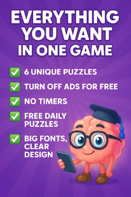 The Brain Game is 6 games in 1: Match 3, Hidden Object, Mahjong, Word Search, Jigsort, and a Pairs card game. These games can help keep your brain sharp: