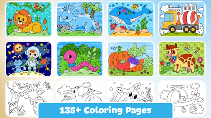 Toddler Coloring Book for Kids (Ages 2–8) Looking for a fun and educational toddler coloring book your child will love? This kids coloring game is designed for toddlers, preschoolers, and young children ages 2–8 who enjoy creative play and learning through art. Our interactive coloring book for kids includes animals, dinosaurs, princesses, cars, space adventures, and many more exciting themes — all in one safe and easy-to-use app.Perfect as a preschool learning game and creative activity for boys and girls.