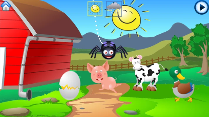 Spiders crawling everywhere! Make it rain, make it shine, get the spiders to go up the spout. Lots of silly spider actions and noises, and a few farm animals waiting to be played with.