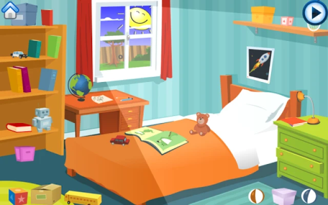 Put all of the toys away before the sun goes down! This game features a kid's room with lots of objects to interact with, including toys, bouncing balls, and books. Perfect for children who love to rearrange and organize.