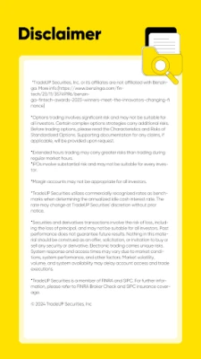 ·Securities products and services offered by TradeUP Securities, Inc. are not insured by the FDIC, and are subject to investment risk, including the possible loss of the principal invested. TradeUP Securities, Inc. charges $0 commission for online US-listed Stocks, ETFs and Options trades. Exclusions may apply and TradeUP Securities, Inc. reserves the right to charge variable commission rates. The standard options contract fee is $0.65 per contract. For more information about pricing, visit https://www.itradeup.com/pricing/commissions