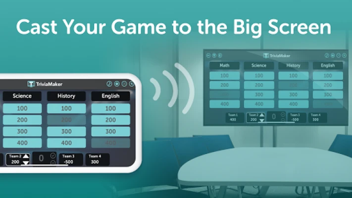 Trivia Maker is cloud based, so once you create an account, you can create a quiz on one device and then display it on another device in front of your audience using a TV or Projector.