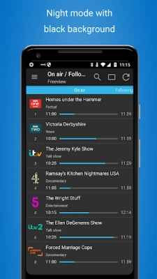 Cisana TV + is a TV guide for UK and IE DTT and satellite television. Thanks to the complete 7-day schedule of each broadcaster, you can plan in advance which programs to watch on television in a quick, simple and intuitive way.
