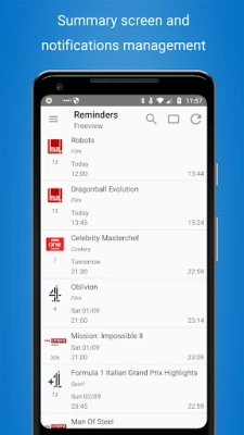 For programs currently on air, a bar is shown that visually indicates how long the broadcast has started and how long it is until the end of the broadcast. You have a handy timeline for an overview of the schedules and sections where only movies, sports programs and cartoons are listed. You can set your favourite channels in order to make the consultation faster.
