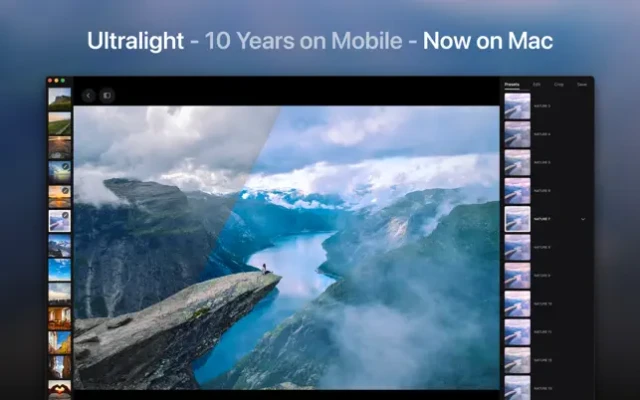 Ultralight offers wide and powerful control for both photo and video editing. Suits amateurs and professionals alike.